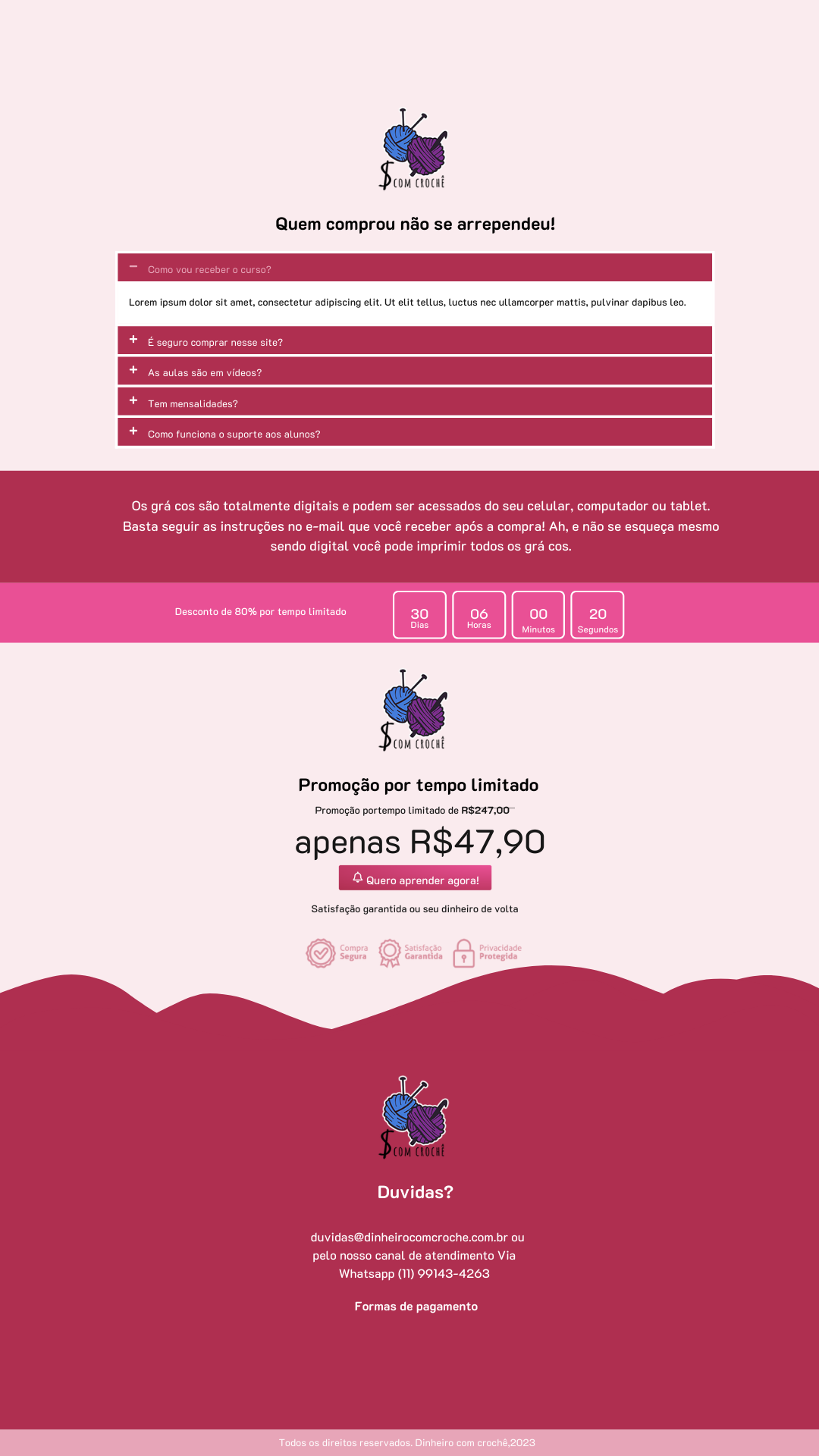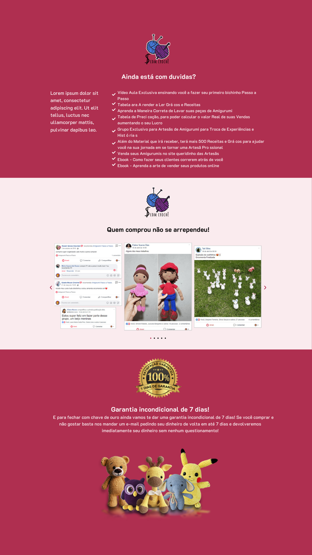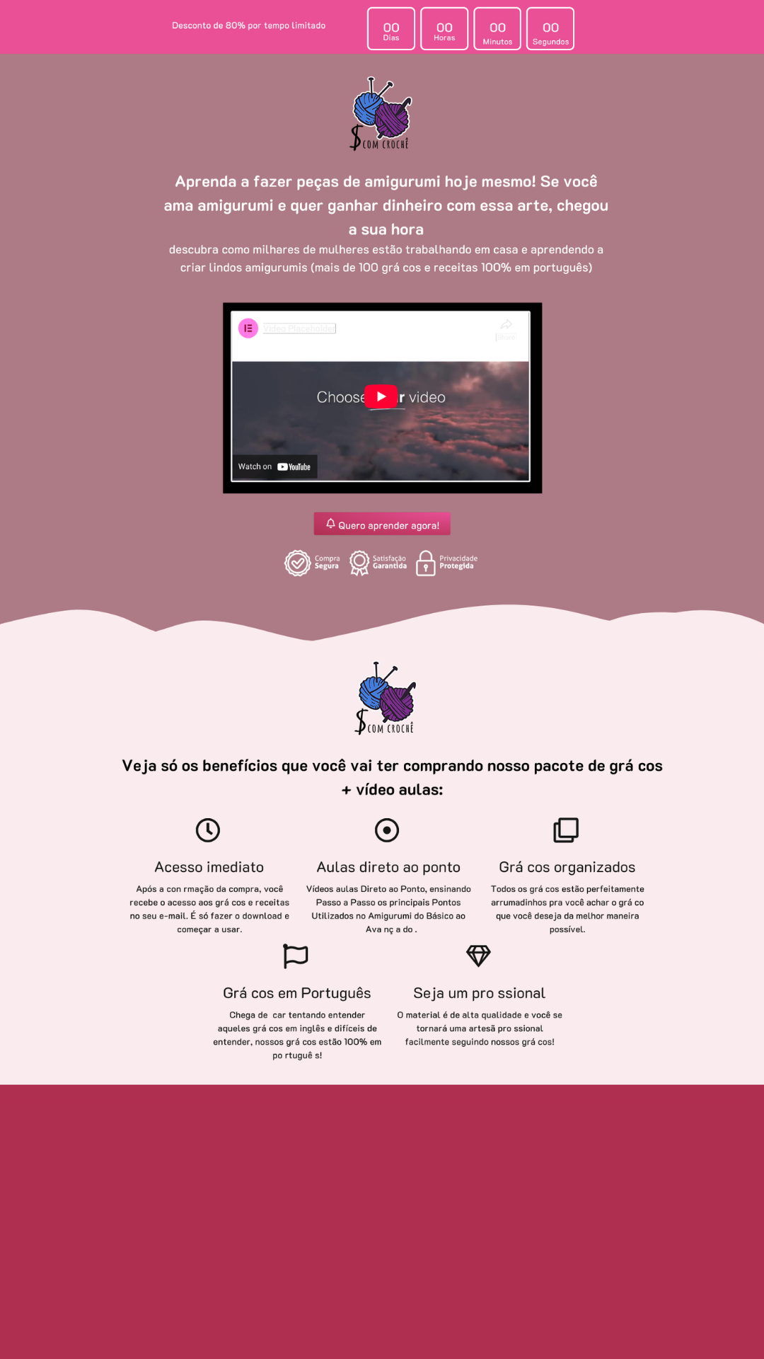 Construí meu site de vendas totalmente no Elementor para ter liberdade criativa e controle total do design. Escolhi cores suaves e delicadas para combinar com o universo dos amigurumis, transmitindo aconchego e artesanato. Cada gatilho de venda — como urgência, prova social e destaque dos benefícios — foi aplicado para aumentar conversão sem perder naturalidade. Estruturei tudo de forma simples, intuitiva e estratégica para criar uma experiência leve e confiável para o usuário.